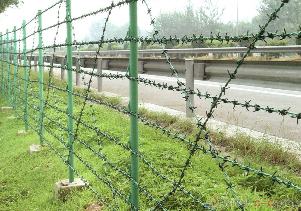 刺絲隔離柵可以采用電鍍、熱鍍、噴塑、浸塑等防腐形式,具有很好的抗老化、抗曬、耐候等特點。其產(chǎn)品造型美觀、花色多樣,既起到圍欄作用,又起到美化作用。我廠可以根據(jù)用戶需要定作各種規(guī)格尺寸的帶刺鐵絲網(wǎng)。